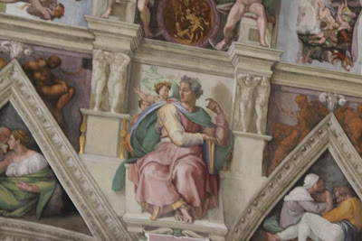 We were about 16 in number, and we strolled leisurely through the museums on to the chapel. I actually saw the gorgeous mosaic tile floor of the Sistine for the first time, because on the previous visit, it was entirely covered by feet. The private time was marvelous, but, at the same time, eerie, because I could not get over the feeling that I wasn't supposed to be there.